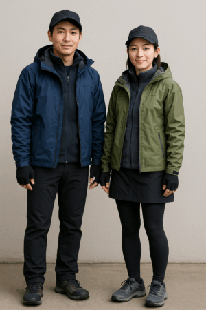 薄手でも発熱機能付きのインナーを選び、保温力の高い中綿ジャケットで冷気をブロック。 - 保温小物:ネックウォーマーや腹部保温(腹巻)をプラスし、冷気の侵入を防ぐ。