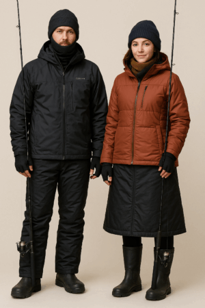 肘や膝部分の立体裁断設計が施されたものは動きやすく、キャスティングや取り込み時のストレスを軽減する。 - 手・頭:防寒グローブ、ビーニー、バラクラバで体温ロスを最小限に。